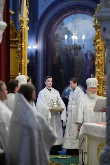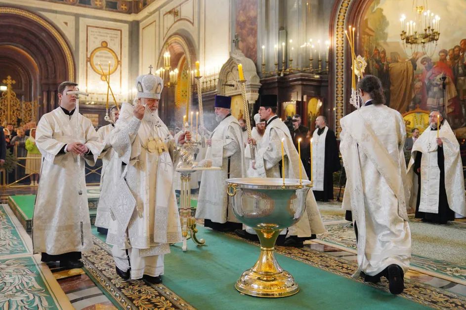 The Holy Patriarch Kirill of Moscow and All Russia celebrated the Divine Liturgy of St. John Chrysostom, Great Vespers and the rite of the great consecration of water at the Cathedral of Christ the Savior in Moscow, the press service of the Russian Orthodox Church reports.