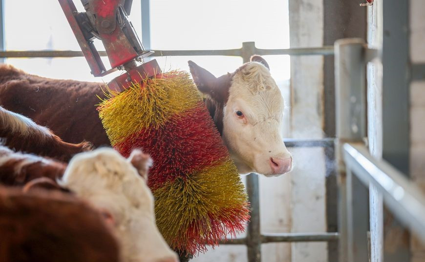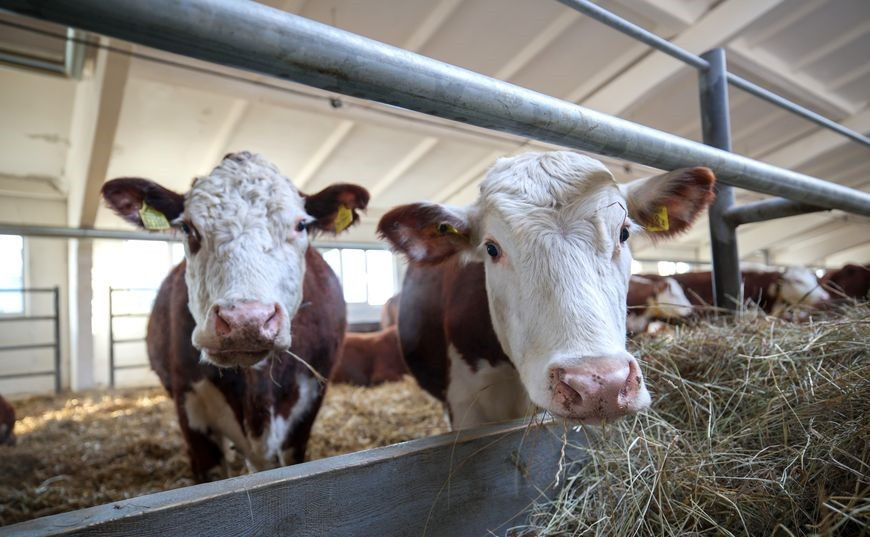 The farm specializes in raising Hereford cattle. This breed is among the most popular beef cattle breeds in the world. It is distinguished by high endurance, undemanding nature, and calm temperament. Animals of this breed adapt perfectly to cold weather and gain weight quickly. Their meat has a uniform fat marbling and is considered “marbled beef”.