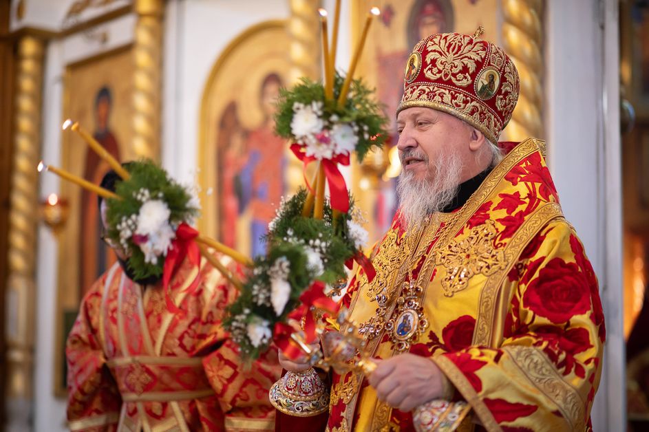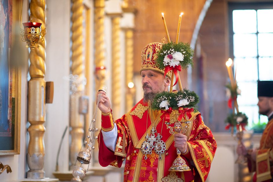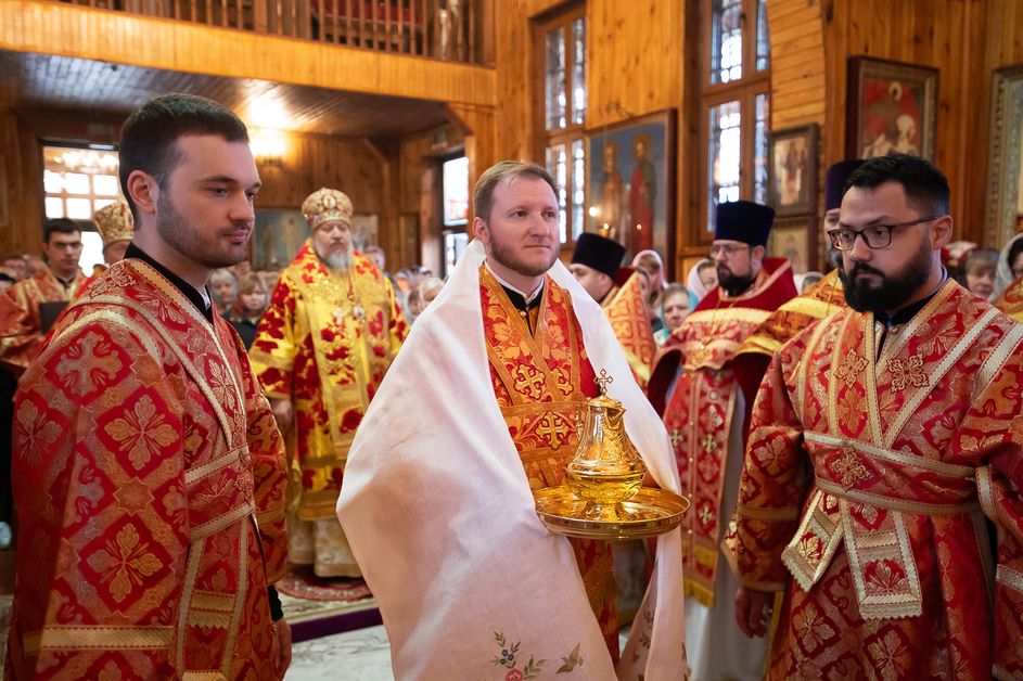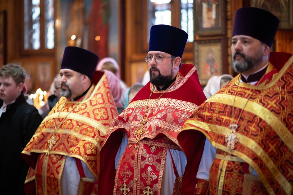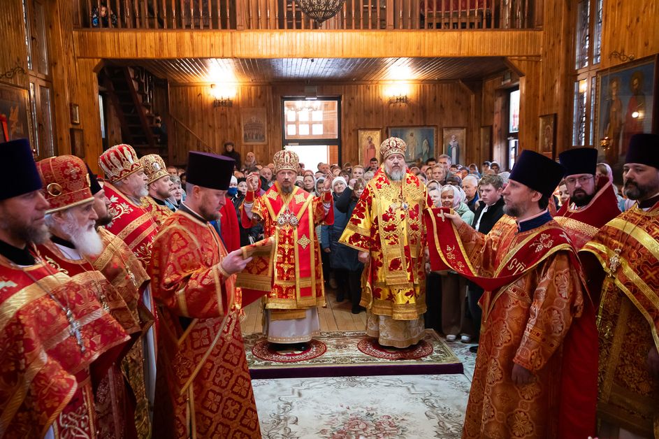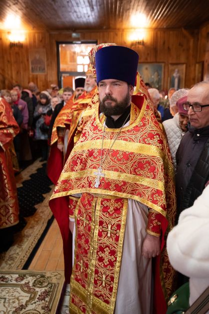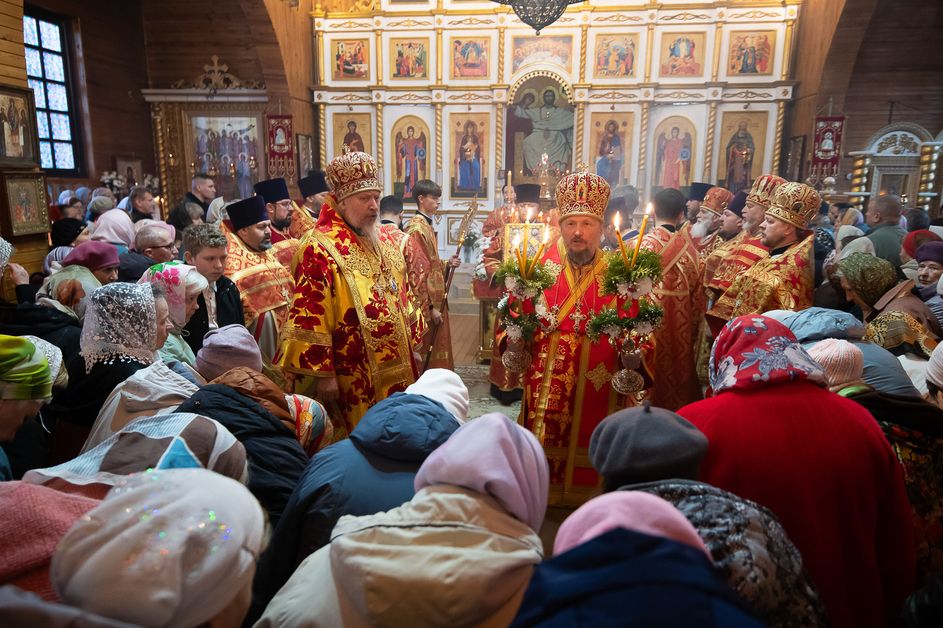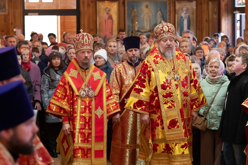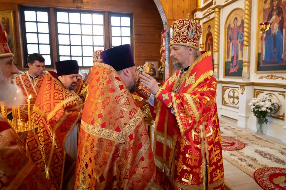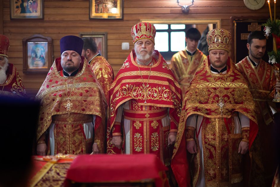 За богослужением архипастырям сослужили ответственный секретарь Управления делами Белорусской Православной Церкви протоиерей Андрей Волков, секретарь Гомельской епархии протоиерей Георгий Алампиев, настоятель храма протоиерей Игорь Ольшанов, а также благочинные и духовенство Гомельской епархии. Диаконский чин возглавил протодиакон Владимир Назаров. Богослужебные песнопения исполнил хор Петро-Павловского кафедрального собора Гомеля под управлением Елены Мороз. Проповедь после причастного стиха произнес иерей Дмитрий Жданов, настоятель храма святого праведного Иоанна Кормянского.