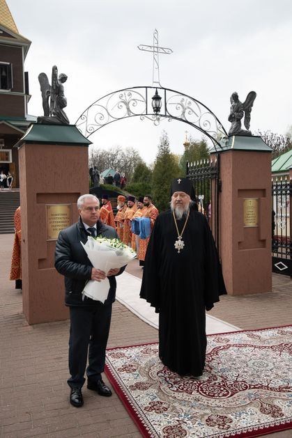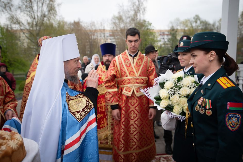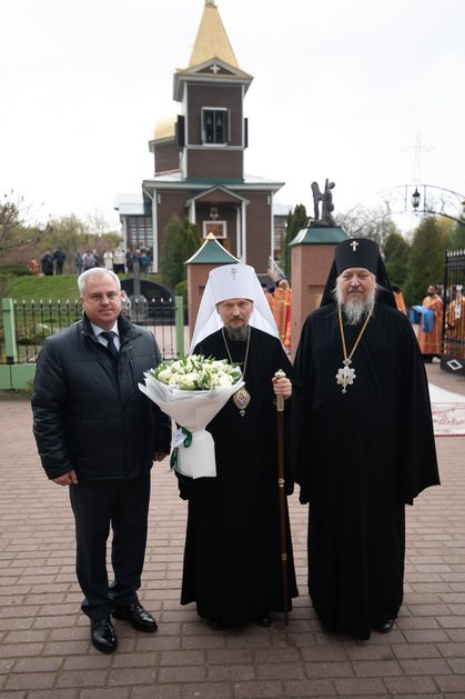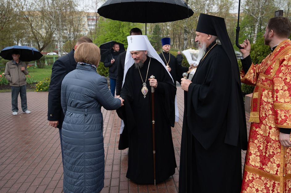 По окончании богослужения архиепископ Стефан обратился к Патриаршему Экзарху с приветственным словом. Он поблагодарил Митрополита Вениамина за совместную молитву в день Чернобыльской трагедии, ставшей одной из самых тяжелых страниц в истории белорусской земли. Владыка Стефан подчеркнул особое значение храма Архангела Михаила, перенесенного из зоны отчуждения, который хранит память о трагедии и одновременно свидетельствует о том, что даже после тяжелейших испытаний сохраняются святыни, жива молитва и не прерывается духовная связь поколений. В память о событии Патриаршему Экзарху была преподнесена икона Божией Матери «Чернобыльская».