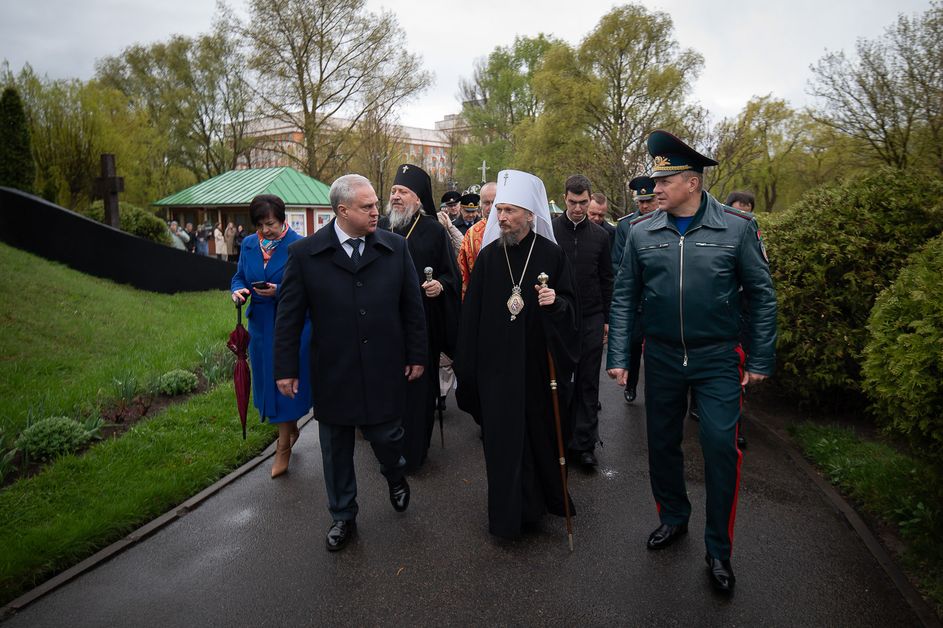 В завершение была совершена заупокойная лития о всех жертвах аварии на Чернобыльской АЭС, после чего состоялось возложение цветов к памятнику погибшим пожарным, размещенному на территории храма.