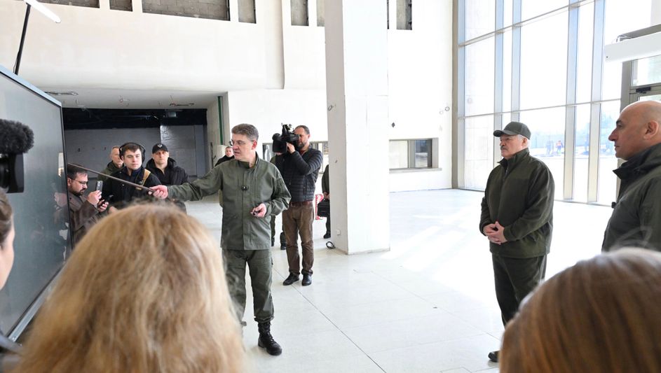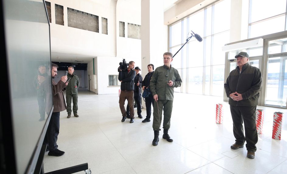 На площадке Национального исторического музея председатель Мингорисполкома Владимир Кухарев доложил Президенту о ходе строительства здания.