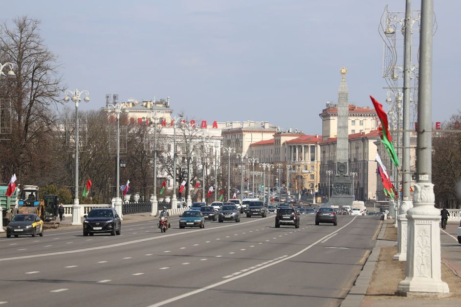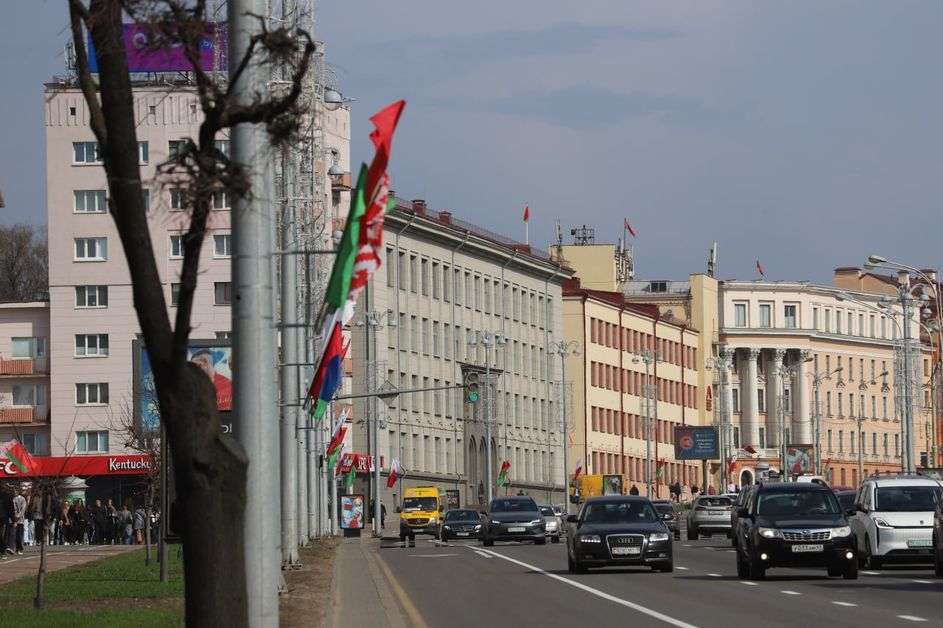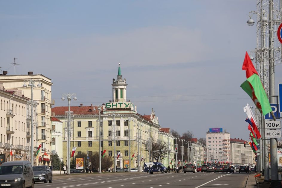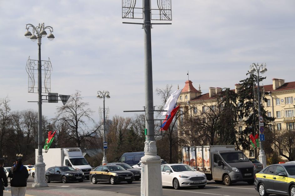 Главные магистрали белорусской столицы в праздничной белорусско-российской символике. Минск готовится отметить День единения народов Беларуси и России.