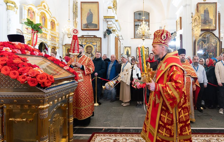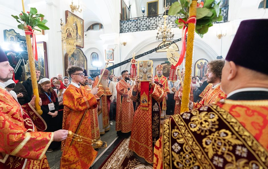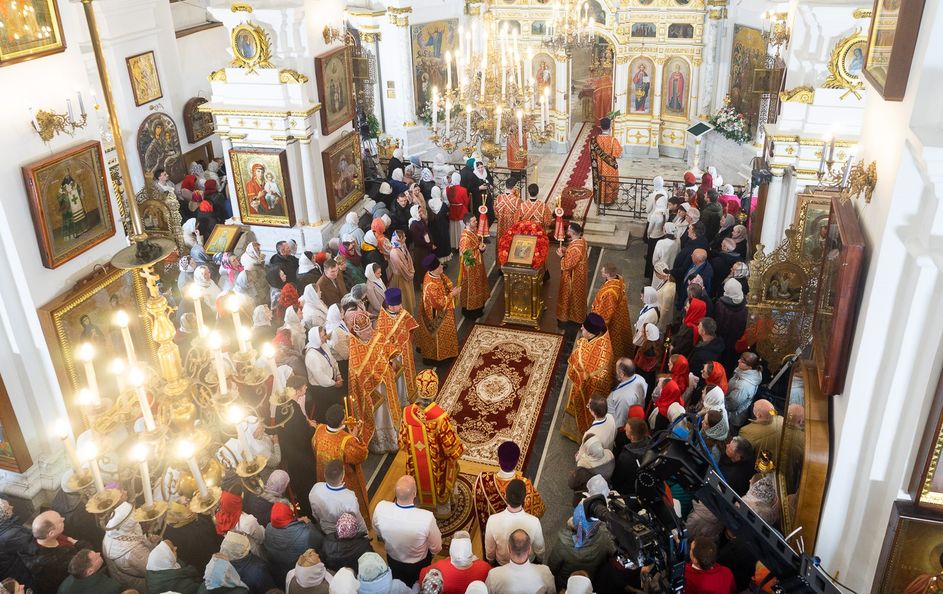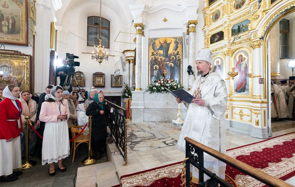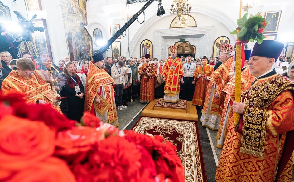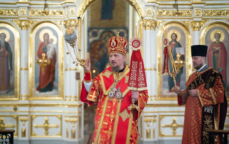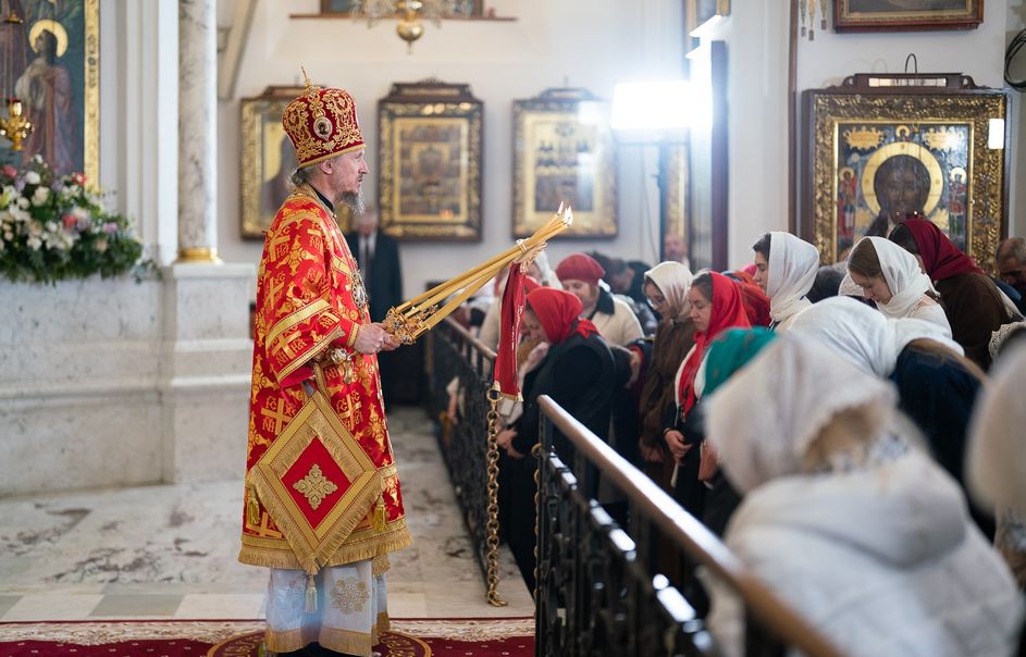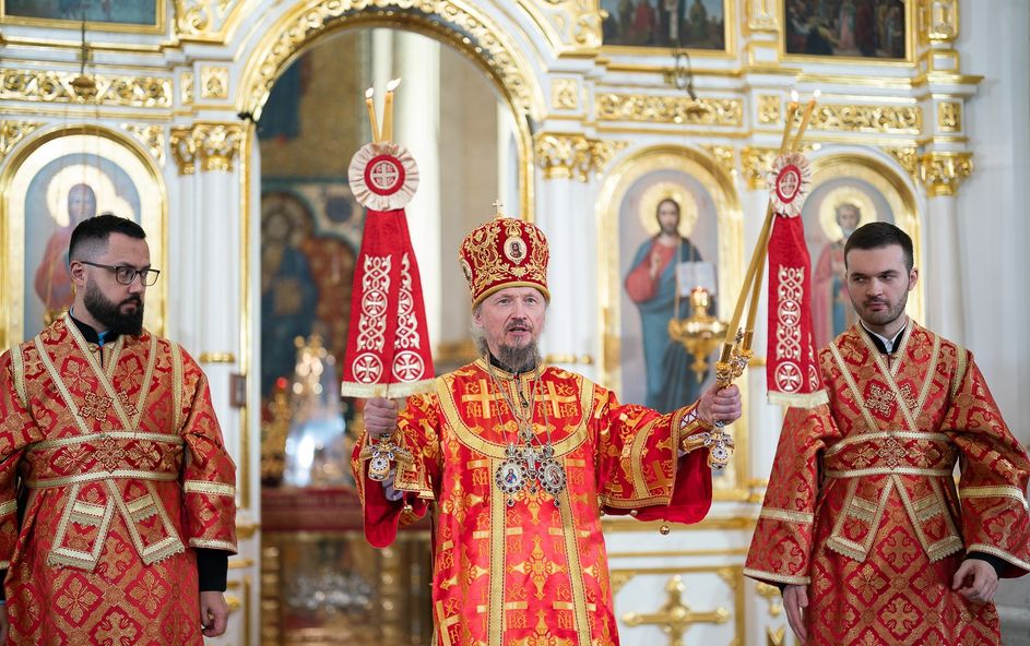 Митрополит Минский и Заславский Вениамин, Патриарший Экзарх всея Беларуси, в сослужении епископа Молодечненского и Столбцовского Павла, епископа Борисовского и Марьиногорского Амвросия и епископа Несвижского Авксентия, викария Патриаршего Экзарха всея Беларуси, совершил Пасхальную вечерню в Свято-Духовом кафедральном соборе города Минска.