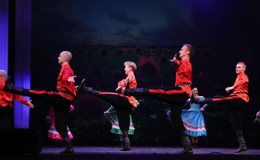Зрители увидели уникальные танцы народов России и мира - русские, казачьи донские, казачьи кубанские, сербские, ирландский, венгерский, тирольский, аргентинский, узбекский - в хореографии Николая Андросова.