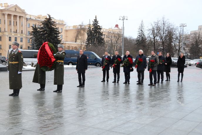ФОТОфакт: возложение цветов к Монументу Победы Д.Мезенцевым, А.Бегловым и Б.Грызловым