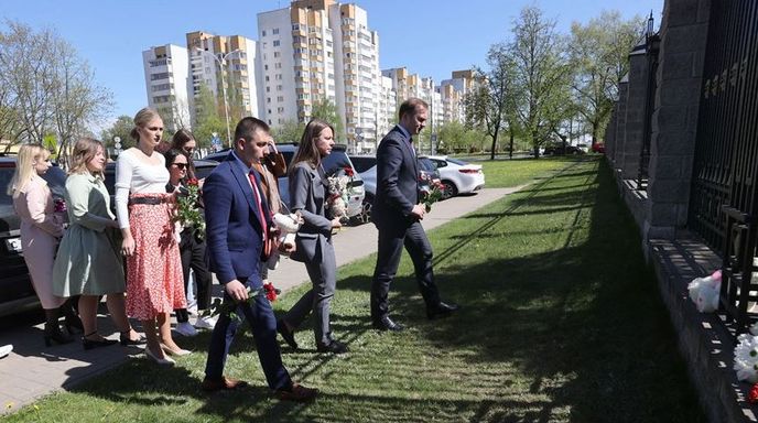 Минчане несут цветы и мягкие игрушки к российскому посольству