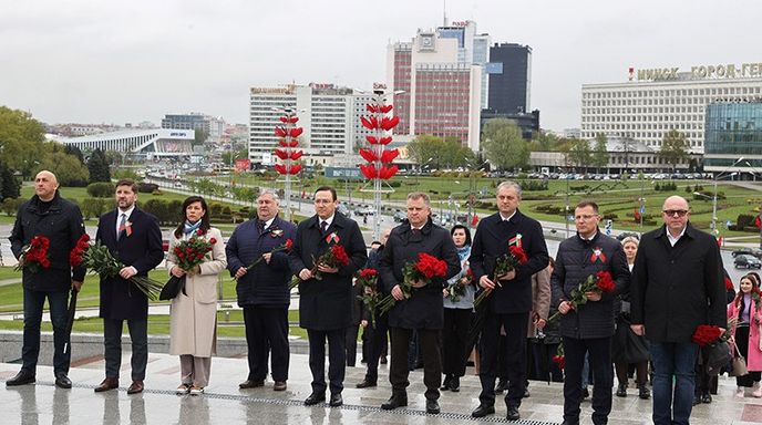 ФОТОфакт: возложение цветов к стеле Минск - город-герой участниками Российско-Белорусского музейного форума