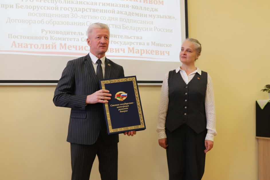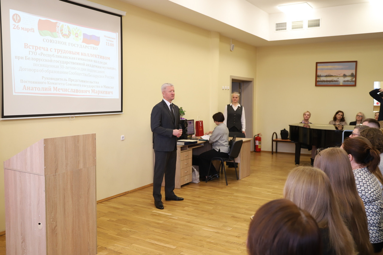 26 марта глава Представительства Посткома СГ в Минске посетил с рабочим визитом ГУО «Республиканская гимназия-колледж при Белорусской государственной академии музыки».