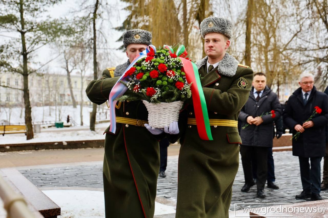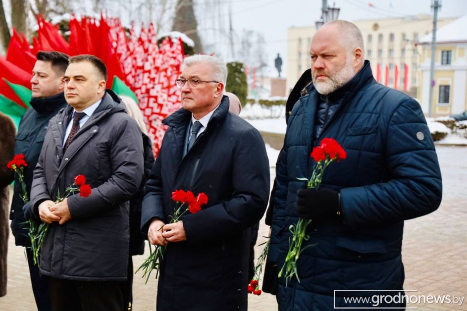 Союзные парламентарии и представители Посткома СГ возложили цветы к братской могиле в парке Жилибера в Гродно