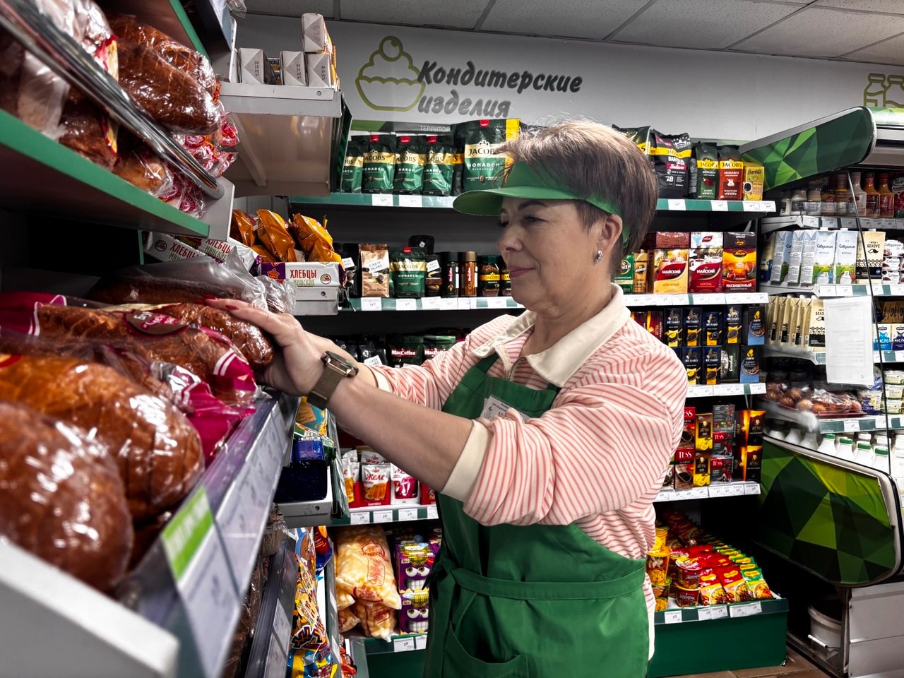 «Обратите внимание, зеленые ценники - это наша собственная продукция!», - говорит Надежда Лукашевич, начальник управления торговли Минского облпотребсоюза. - Всё: выпечка, печенье, рулеты, пряники – это нашего, Логойского производства.