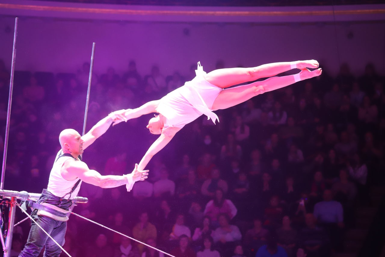 Воздушные акробаты Белорусского государственного цирка впечатлят публику, выполняя опасные номера под куполом на высоте 22 метров без страховки. Российские артисты представят номер "Колесо смелости", демонстрируя пределы человеческих возможностей.