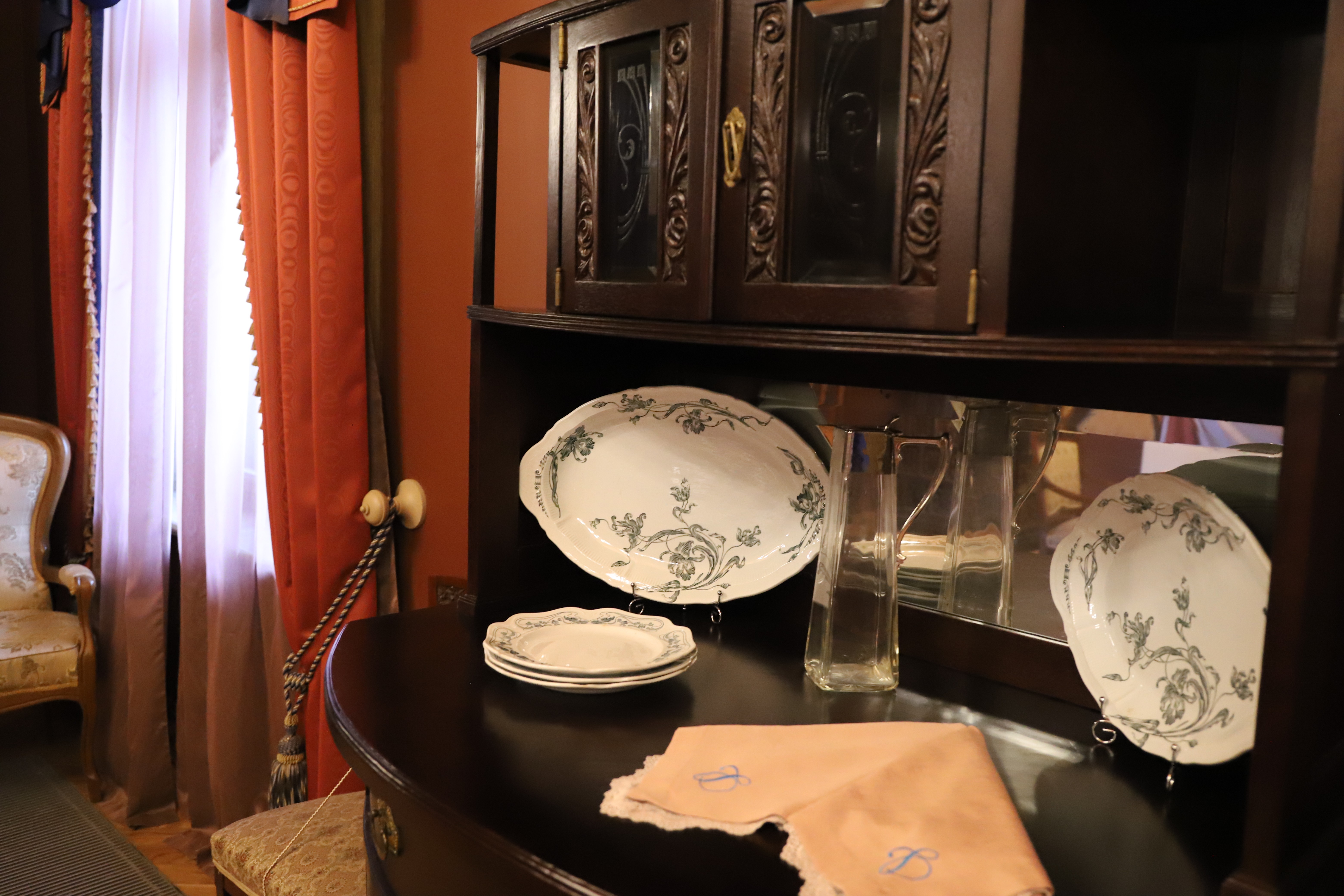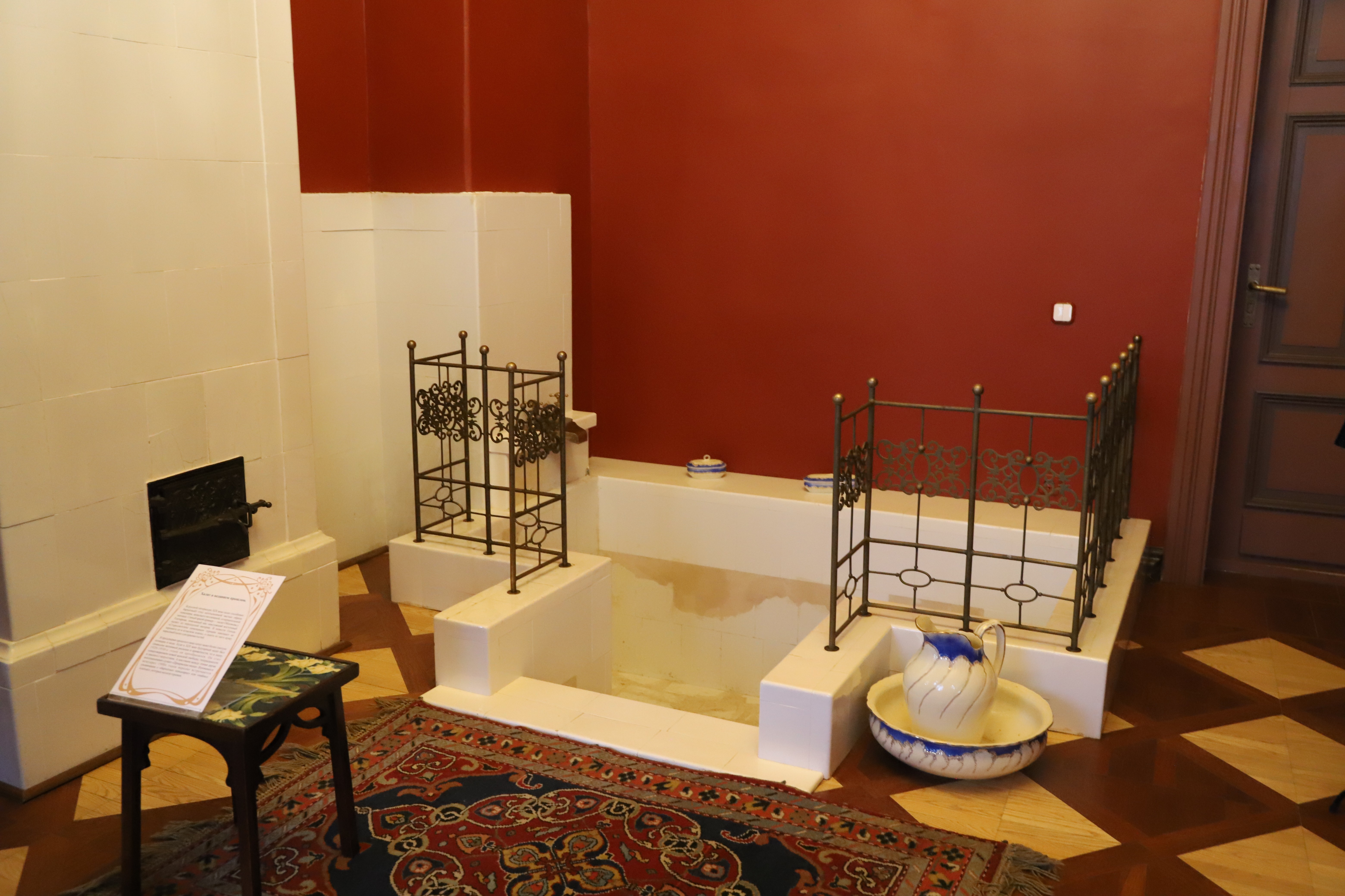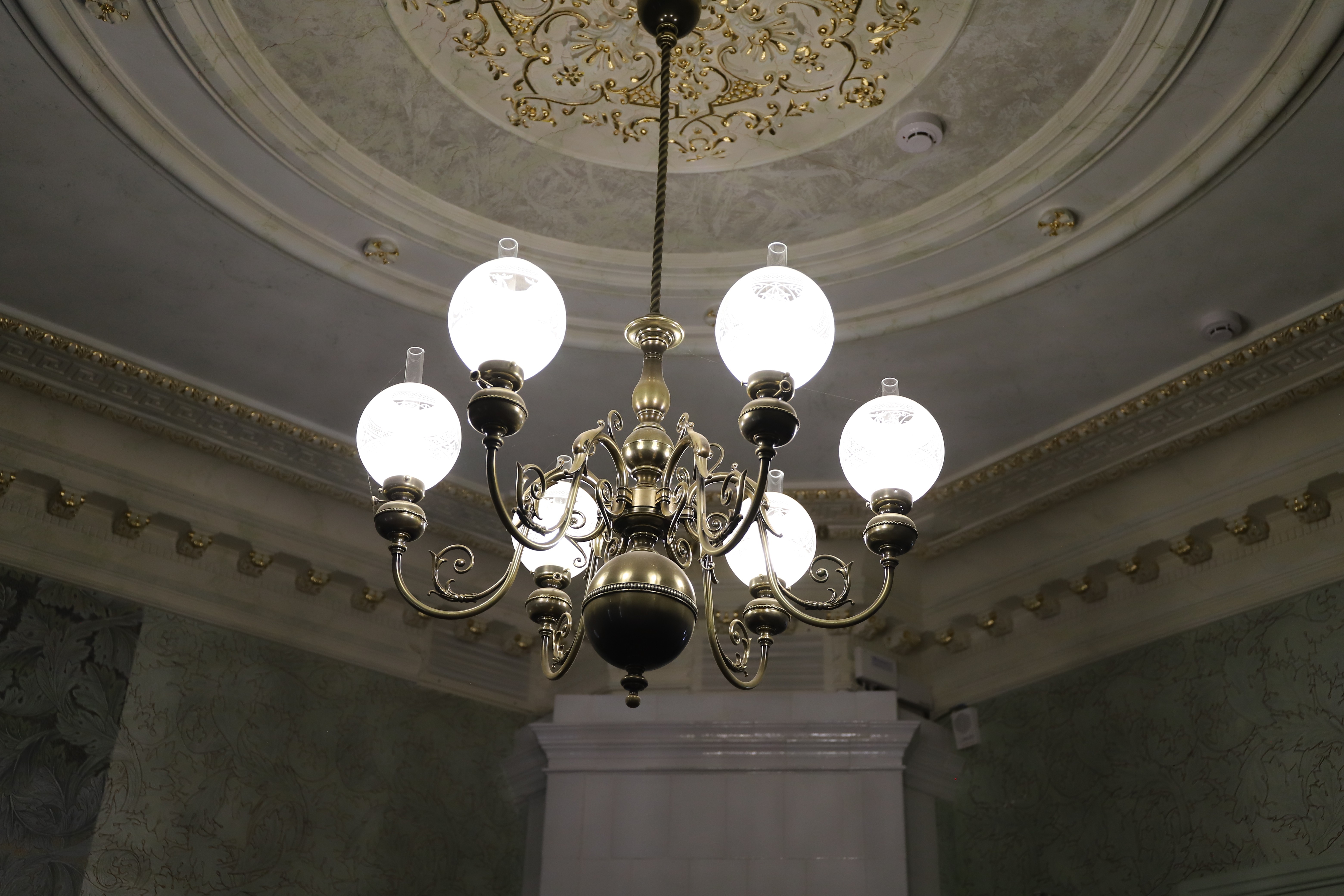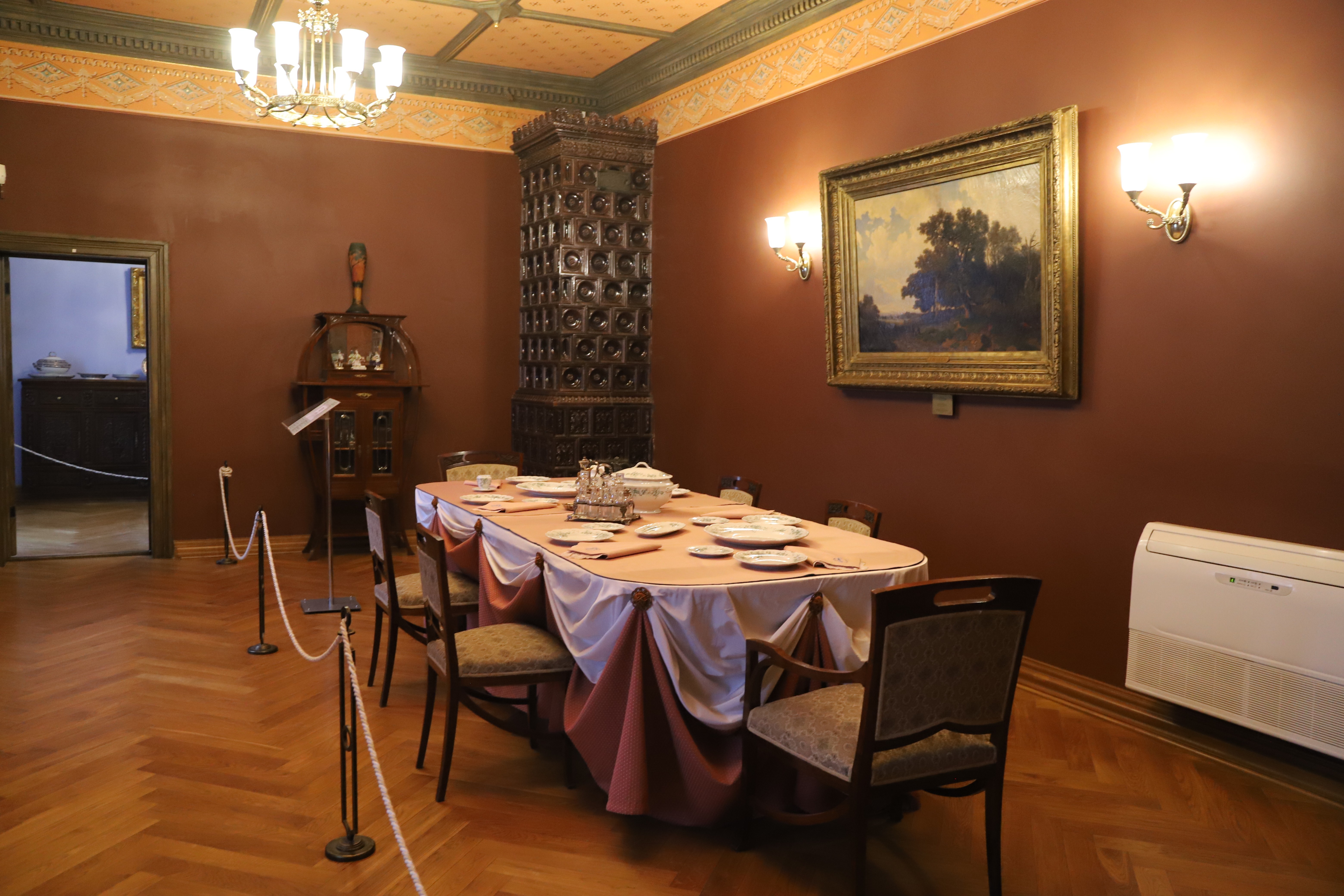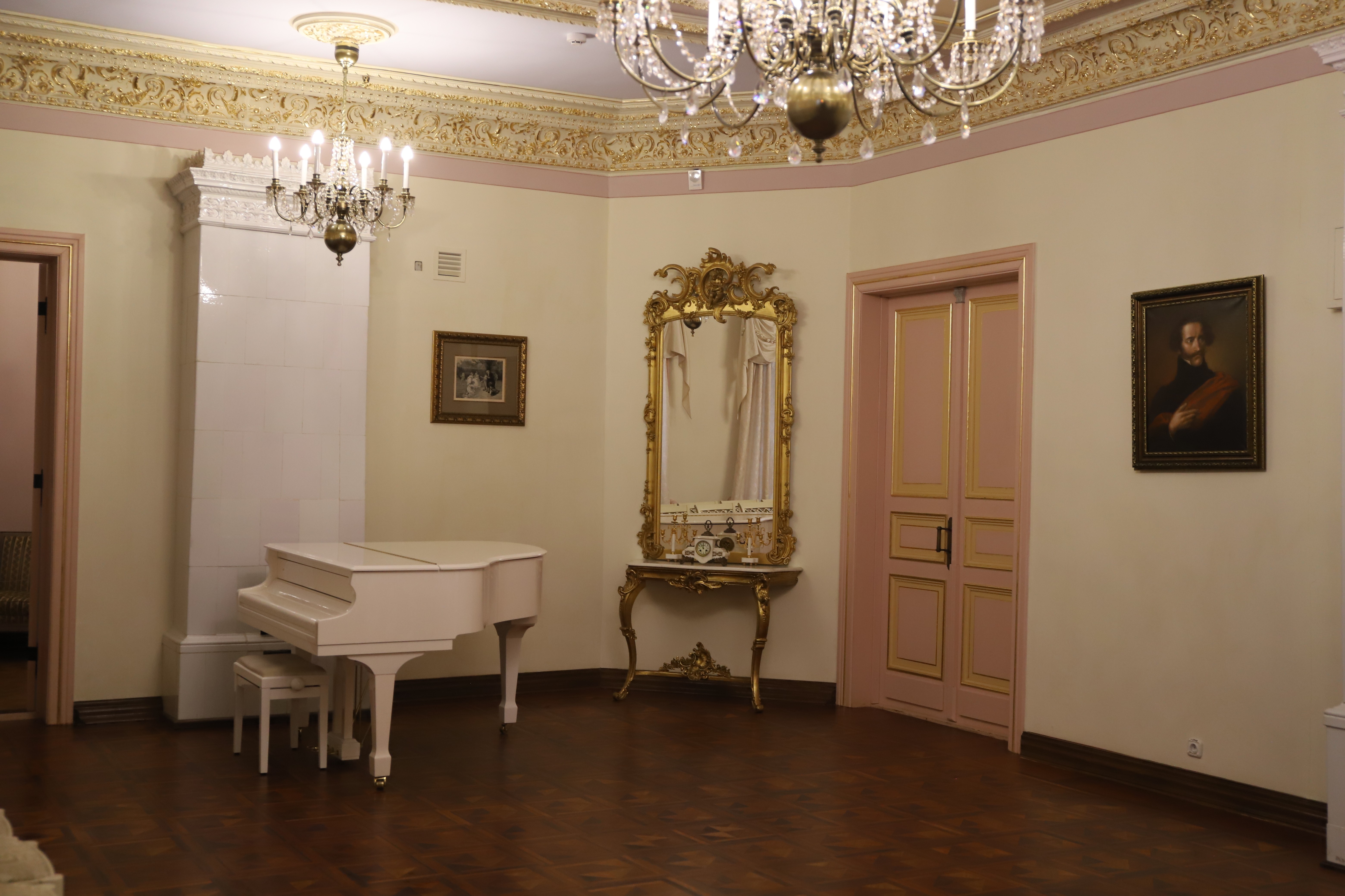 Как отметила Лидия Маркович, из оригинальных элементов сохранились все печи. Деревянный дом, которому на момент реставрации было уже 300 лет, практически перебрали заново. Росписи и потолочную лепнину открывали и воссоздавали, как и настенные росписи. В вестибюле остались оригинальные дверные порталы. А ещё реставраторов ждали сюрпризы: там, где на первый взгляд использовано дерево, на самом деле оказались лепнина и роспись — искусная имитация под текстуру. Двери выполнены из лиственницы, но тонированы под разные породы дерева в зависимости от дизайна каждой комнаты.