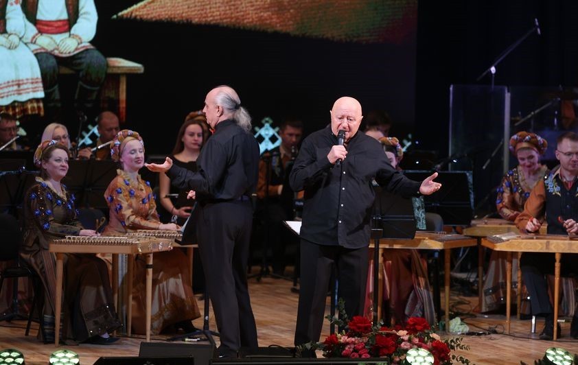 На сцену также вышел белорусский певец, композитор Петр Елфимов, который каждый год участвует в концертах, посвященных Владимиру Мулявину, и исполняет композиции «Песняров». «Мне как человеку ответственному всегда волнительно. Я и много других прекрасных исполнителей ценим высокое искусство, которое подарил нам Владимир Георгиевич. Мы прикасаемся к белорусскому наследию, которое живет благодаря Национальному академическому оркестру имени И.Жиновича. В этом году мы делаем небольшую ретроспективу по периодам его творчества», - сказал певец.