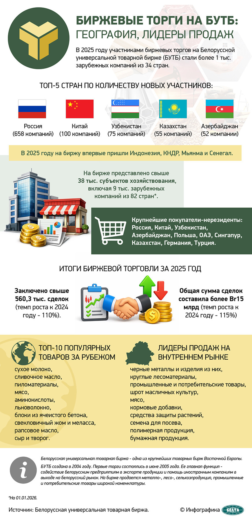 По состоянию на 4 марта 2026 года на БУТБ аккредитованы 642 субъекта хозяйствования из Смоленской области. В 2026 году к биржевым торгам приступили семь новых представителей делового сообщества региона.