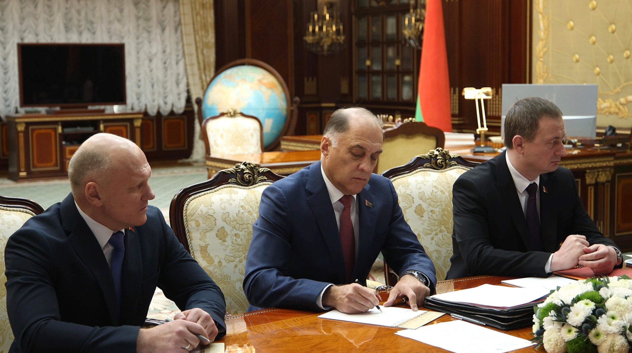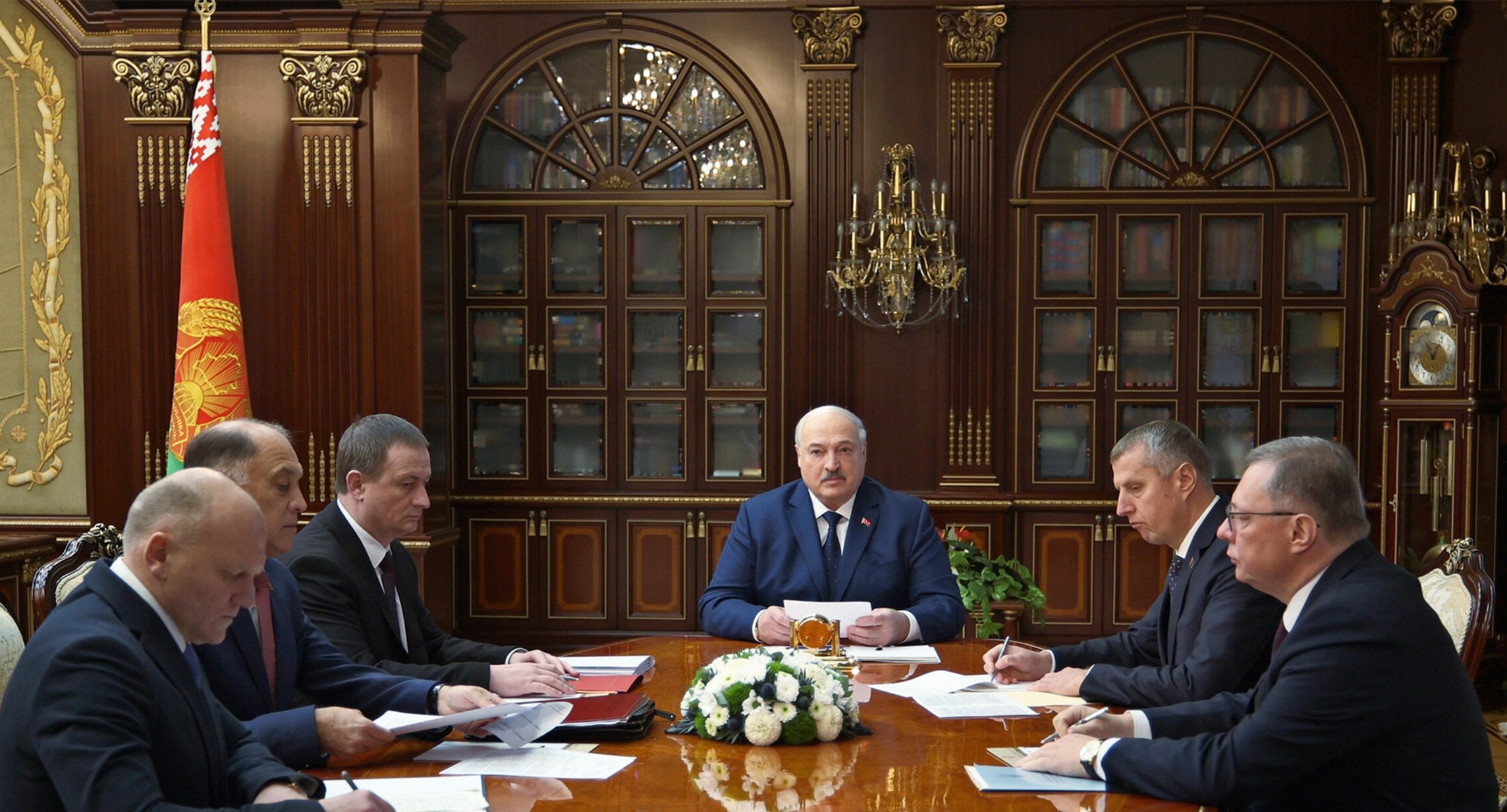В числе участников совещания Премьер-министр Александр Турчин, Госсекретарь Совета Безопасности Александр Вольфович, Глава Администрации Президента Дмитрий Крутой, Генеральный прокурор Андрей Швед и Председатель КГБ Иван Тертель.