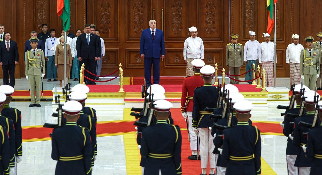 Президент Беларуси Александр Лукашенко 28 ноября проводит переговоры с исполняющим обязанности Президента Республики Союз Мьянма, председателем Комиссии национальной безопасности и мира Мин Аун Хлайном в Президентском дворце в Нейпьидо, сообщает пресс-служба главы белорусского государства.